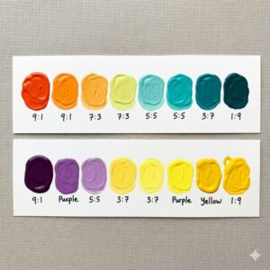 水彩絵の具:乾燥後も水に溶けるため、修正が比較的容易です。透明感のある表現が得意です。