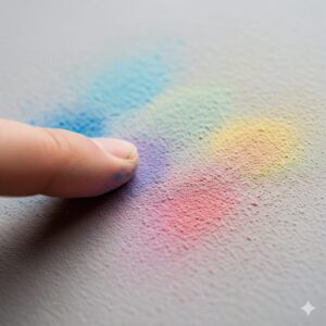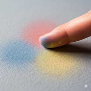 などを少量加えて、均一な色になるまでよく練り込みます。絵の具を混ぜる場合は、入れすぎると粘土がベタベタして扱いにくくなることがあるため、一度に加える量は米粒程度から試すのがおすすめです。