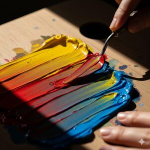アクリル絵の具で黄土色を作る場合も、基本的な考え方は水彩絵の具と同じですが、いくつかの方法があります。ここでは代表的な2つの作り方を紹介します。